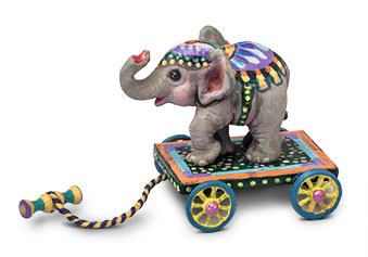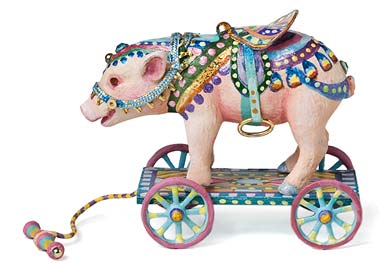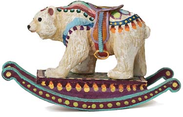 I grew up at the New Jersey shore, less than a block from the beach. On the small boardwalk at the end of the street was a Victorian Carousel. I called it a Merry-Go-Round and it was magic. There were horses with elaborately carved saddles, festooned with garlands of flowers. But there were also tabby cats with birds in their mouths, zebras and giraffes, ostriches and tigers, lions, bears and pigs. Even as a child I was inspired by the beauty of these carved and wonderfully painted wooden beasts.