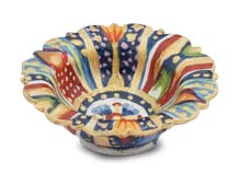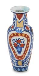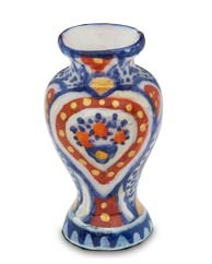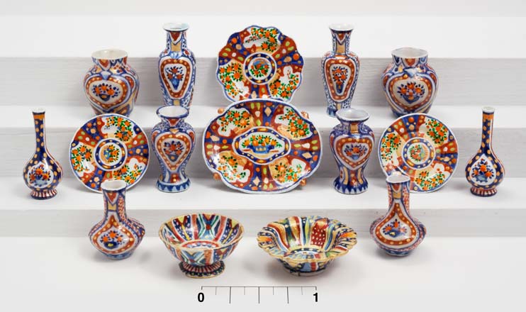 My “porcelain” pieces are inspired by original Asian or English patterns. Most are made of brass or pewter; base coated, hand painted and glazed. However, the tureen and some of the bowls are bisque. All the pieces are in 1/12th scale.